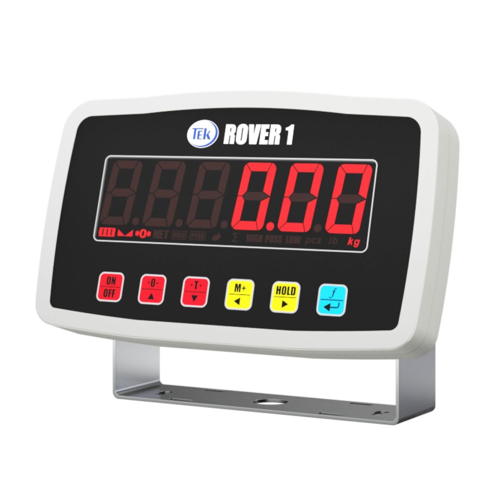 Indicador, solo peso, display LED o LCD, carcasa ABS, soporte a pared, RS232.